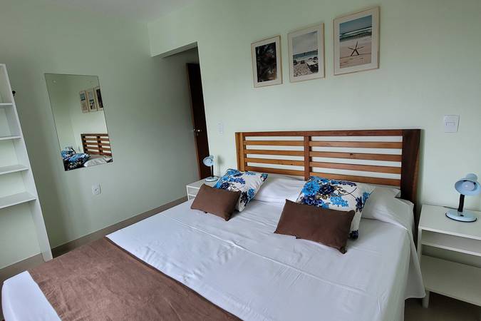 Com 2 quartos + 2 banheiros + sala integrada à cozinha + sacada com churrasqueira, o imóvel é perfeito para quem gosta de curtir a praia com conforto e autonomia.